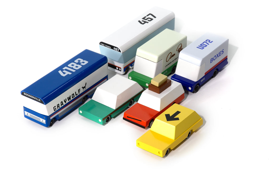 As artists, designers and parents we draw on many influences, not least of which are our deep love of classic American Cars and the craftsmanship spirit of mid-century artisan furniture designers. Coupled with the realization that we’re slowly drowning in forgettable toys that break and disassemble — ending in piles of plastic bits — this determined us to create a line of heirloom wood toys that are elegant, durable, and simple, giving children a chance to create their own stories around the objects they play with.