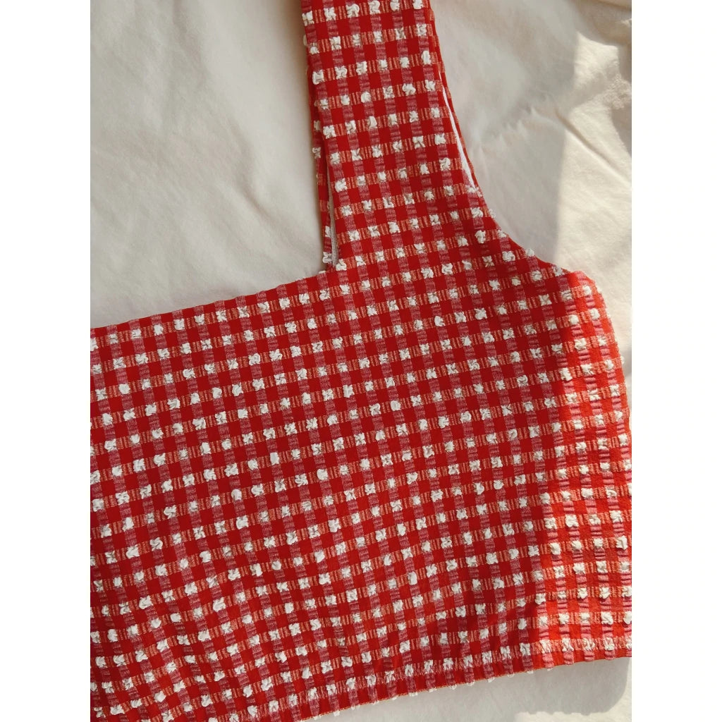 Bikini made in a soft seersucker effect. The top features a square neckline and a built-in bra with an elastic band at the base to support the breasts. The stretchy fabric protects against the sun’s UV rays with the highest ultraviolet protection factor, UPF 50+.