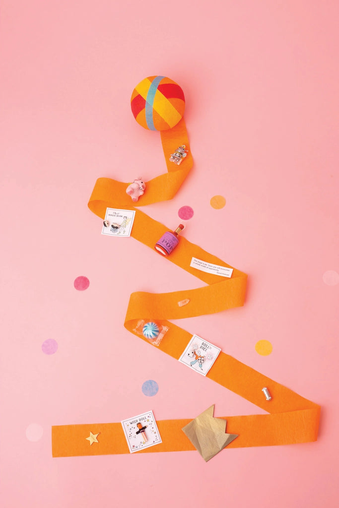 Create memorable moments at any event with a Deluxe Surprize Ball. Unwind layers of colorful crepe paper ribbons to reveal precious vintage inspired keepsakes tucked carefully within this beautifully handmade surprise Ball. Great for adults & kids!